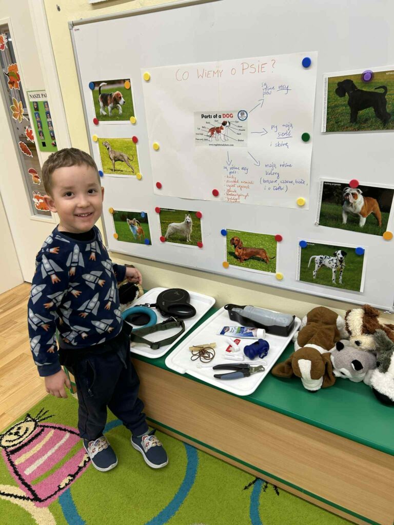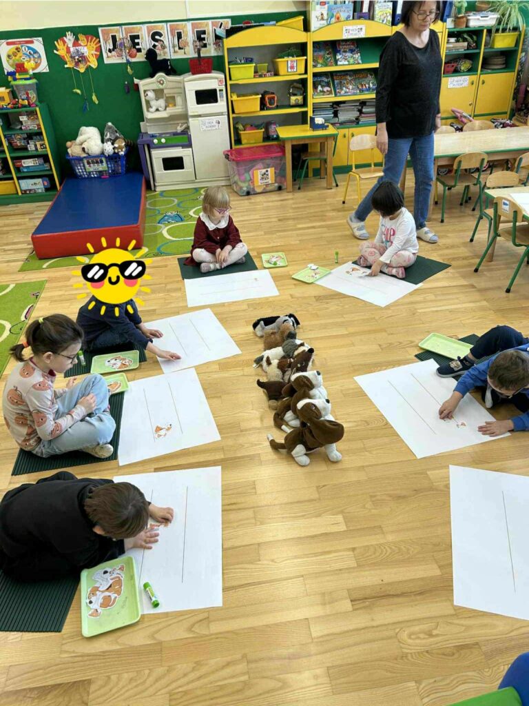 Zajęcia w Żółtych Sówkach prowadzone metodą projektu. Dzieci poznały ciekawostki o psach, nazwy niektórych ras. Dowiedziały się, że są psy pracujące, które są prawdziwymi bohaterami.