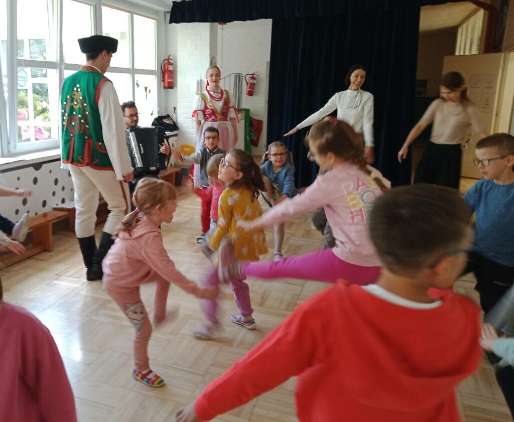 Tym razem poznawaliśmy pieśni, tańce i zabawy spiskie. Jak zawsze wszystko przy dźwiękach pięknej muzyki ludowej.