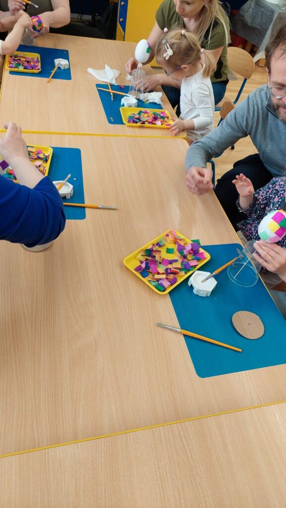Nasze coroczne warsztaty świąteczne z Rodzicami to piękna tradycja. Rodziny mają okazję spędzić wspólnie czas własnoręcznie przygotowując ozdoby na stół wielkanocny. To nie tylko dobra zabawa, ale też cenny czas spędzony razem