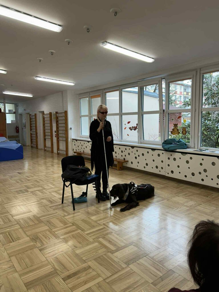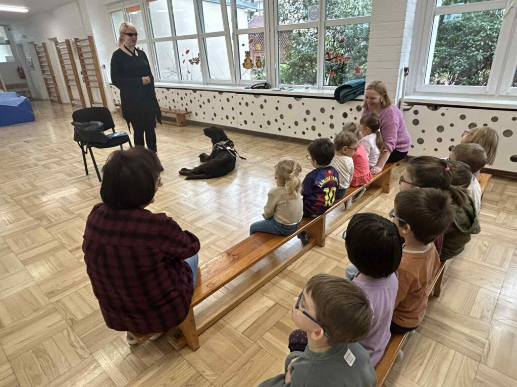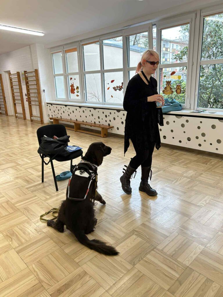 Sóweczki dowiedziały się jak należy zachować się, gdy spotkamy osobę niewidomą z psem, jakie szkolenie musi przejść pies, by zostać przewodnikiem, a także co potrafi psi asystent