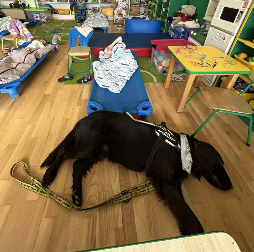 Na koniec nasz czworonożny gość, zmęczony wrażeniami, uciął sobie drzemkę na leżakowaniu razem z dziećmi.